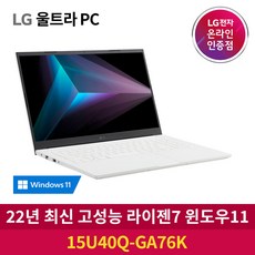 2022 LG 울트라PC 15U40Q-GA76K AMD라이젠7 WIN11탑재 엘지노트북, 화이트, AMD, 256GB, 16GB, WIN11 Home