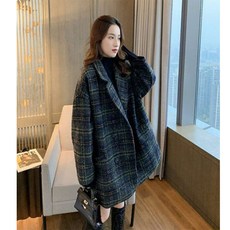 Mao정장 코트 가을 겨울 새로운 인기있는 작은 다목적 격자 무늬 트위드 중반 모직 코트