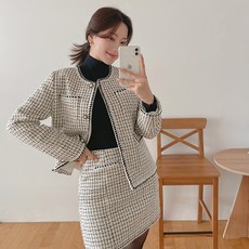 더폴 유럽풍 유행 패션룩 여자 정장 트위드자켓