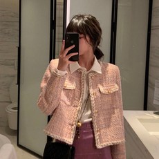 DH 새로운 봄과 가을 모두 프랑스어 스타일 스트리트 스타일의 여성 짧은 트위드 튀김 거리 핑크 코트