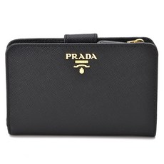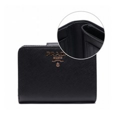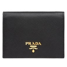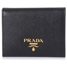 프라다 1ML018 QWA F0002 사피아노 금장로고 반지갑 플랩 블랙